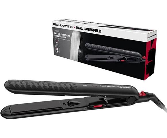 Rowenta x KARL LAGERFELD Optiliss Presa za kosu vam stavlja glamur i sjaj na dohvat ruke, sa našom ekskluzivnom Keratin & Glow oblogom koja smanjuje statički elektricitet i čini kosu svilenkasto glatkom i blistavo sjajnom. Dizajnirana za sve vaše potrebe stilizovanja sa preciznim podešavanjem temperature do 230°C za različite tipove kose. Efikasnost u jednom potezu zahvaljujući sistemu plutajućih ploča zajedno sa karakteristikama poput brzog zagrevanja za 30 sekundi za jednostavno stilizovanje sa izvanrednim rezultatima.