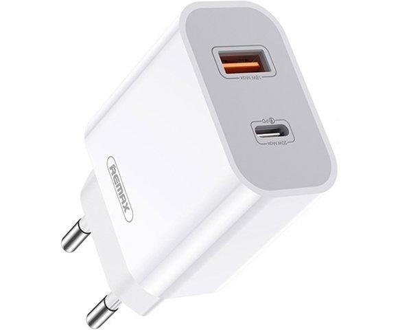 REMAX RP-U68 QC + PD 20W adapter beli - Punjač za mobilne telefone Snaga: 20W Priključci: 1x USB tip A, 1x USB tip C