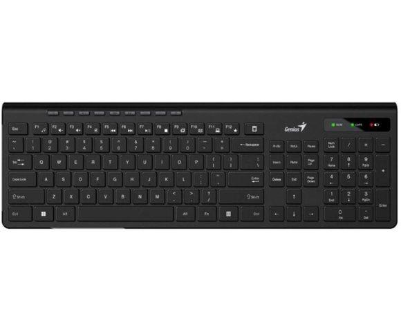 Genius SlimStar 7230 USB YU crna tastatura - Membranska Povezivost: Bežična Tip povezivosti: Wireless Slovni raspored tastera: YU Dodatni tasteri: 9 multimedijalnih tastera Napajanje: 1x AA baterija Ostale osobine: Dugme za kalkulator, Ergonomični dizajn