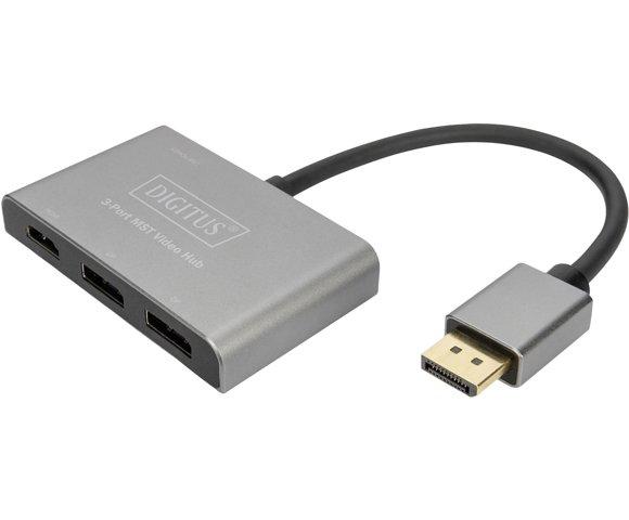 Digitus Adapter video Hub DisplayPort - 2x DisplayPort + HDMI - 3840 x 2160 piksela, Crno, Sivo, Akrilonitril butadien stireni (ABS), Aluminijum, 4K Ultra HD