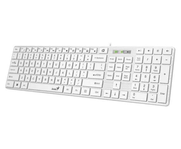 Genius SlimStar 126 Multimedia Keyboard, žična tastatura, Puna veličina (100%), USB A port, Membranski prekidači, QWERTY YU layout, Dužina kabla: 1,4 m (bijela)