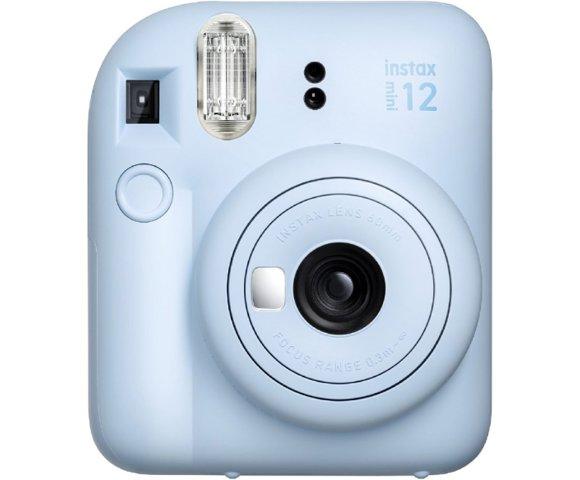 Fujifilm Instax Mini 12 instant kamera (Pastel Blue), ISO osetljivost: 5 - 14.5, Veličina slike: 86 x 54 mm, Maksimalna fokalna dužina (ekvivalent filma od 35mm): 60 mm, Veličine filma: 62 x 46 mm, Struktura objektiva: 2/2, Prioriteti blende AE, Najveća brzina zatvarača fotoaparata: 1/2 s, 2xAA baterije (plava) - FOT01218