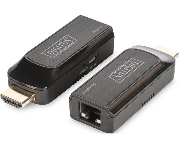 Digitus Mini HDMI Extender Set - set za produžavanje dužine HDMI kabla - Produžava Full HD video sadržaj do 50 m korišćenjem CAT 6/6A/7 kabla - PoE podrška - Napajanje putem Micro USB kabla - 20538