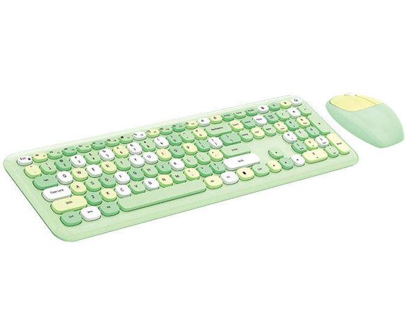 MOFII 666 2.4GHz COMBO set tastatura i miš (SMK-666395AG Green) - Tip prekidača: Membrana - Interfejs: 2,4 GHz - Rezolucija miša: 1200 DPI - Napajanje tastature: 1x AAA baterija (alkalna) - Napajanje miša: 1x AA baterija (alkalna) - Boja: Zelena - 6950125748919