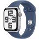 Apple Watch SE 2 GPS 44mm Silver Alu Case with Denim Sport Band - S / M smartwatch pametni sat (MXEQ3QV/A), Displej: Retina LTPO OLED, do 1000 nita, Čip: S8 SiP, dvojezgarni procesor, Baterija: do 18 sati rada, brzo punjenje do 80% za 1.5 sati, Operativni sistem: watchOS, Senzori: optički senzor otkucaja srca, kompas, visinomjer, akcelerometar, žiroskop, senzor ambijentalnog svjetla, Povezivost: GPS, Wi-Fi 4, Bluetooth 5.3, Apple Pay