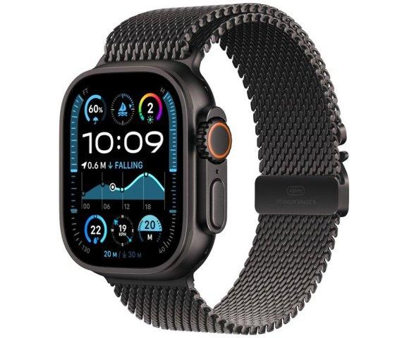 Apple Watch Ultra2 v2 Cellular 49mm Black Titanium Case with Black Titanium Milanese Loop - M smartwatch pametni sat (MX5U3SE/A), Ekran: 49mm 410 x 502px Retina LTPO2 OLED, Operativni sistem: watchOS, Čipset: S9 SiP sa 64-bit dual-core procesorom 4-core Neural Engine, GPS / WiFi / Bluetooth, Trajanje baterije pri standardnom korištenju: 36h
