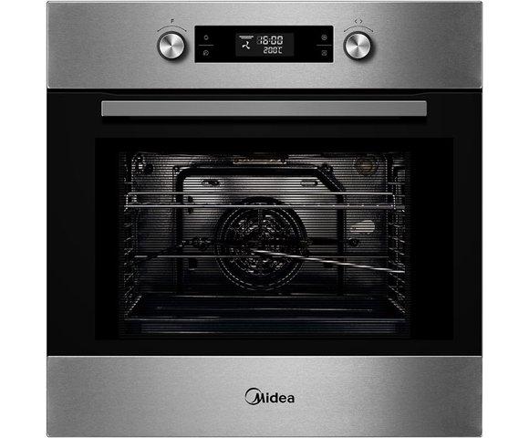 Midea 65M90E3 ugradna rerna, Zapremina: 70l, Snaga pećnice: 3000W, Radna temperatura: 50-250°C, Unutrašnje osvjetljenje sa 1 halogenom lampom, Dimenzije proizvoda (ŠxDxV): 595/575/595mm, Broj programa pećnice: 9, EAN: 6944271662427
