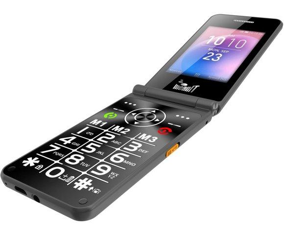 MeanIT Flip XXL mobilni telefon, Ekran u boji 2,8 inča, Dual SIM 2G, Velike tipke i font, Vanjski indikatori za poruke i pozive, LED svjetiljka, Kamera, FM radio i Bluetooth veza, Baterija 1400 mAh