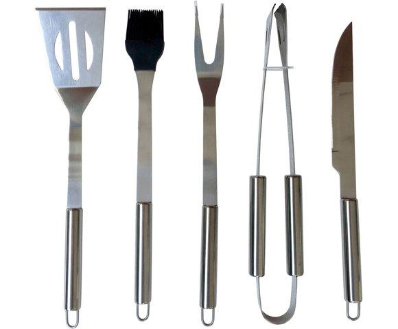 FIELDMANN FZG 9016 Pribor za roštilj (5 delova), Materijal: Čelik, Boja: Siva, Set: 5 komada, Sadržaj: Četka, Kašika, Klešta, Nož, Viljuška