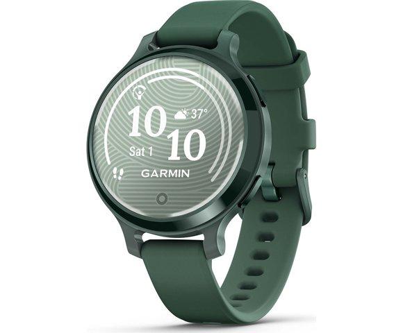 Garmin Lily 2 Active, zeleni (010-02891-02) │Ekran: 1" (240 x 201 piksela), Vodootpornost: 5 ATM (plivanje), Trajanje baterije: do 9 dana (pametni sat), 9 sati (GPS), Materijal: Anodirani aluminij, Gorilla Glass 3, Silikon, Funkcije: GPS, GLONASS, Galileo, praćenje zdravlja, puls, stres, spavanje, Garmin Pay, Aktivnosti: Trčanje, Plivanje, Golf, Biciklizam, Fitness, Priključci: Bluetooth, ANT+