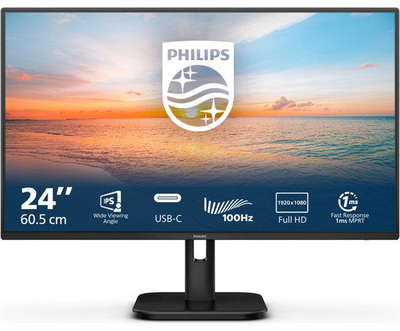 Philips 24E1N1300A/00 monitor, Displej: 23.8", 1920x1080 (IPS, 100Hz, 1ms MPRT, 250 cd/m², 1300:1), Osvetljenje: W-LED, Priključci: 1x HDMI 1.4, 2x USB-A 3.2 Gen 1, 1x USB-C (DP Alt Mode, 65W), Audio out, Zvučnici: 2x integrisani, VESA: 100x100mm, Težina: 3.41kg sa postoljem, Boja: Crna