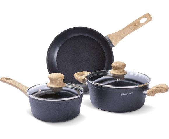 LAMART LT1282 set posuđa, Materijal: Aluminijum, Stakleni poklopac, Boja: Crna, Set: 5 kom (2 poklopca), Ostalo: Nelepljiva površina, Lako za čišćenje, Sprečava zagorevanje, Poklopac sa otvorom za paru