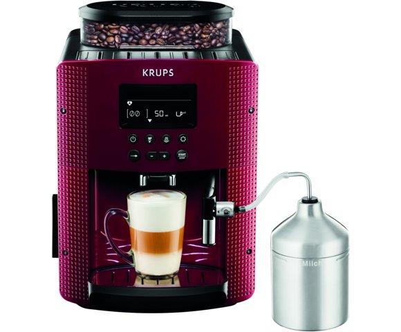 Krups Essential Cappucino EA816570 Red automatski espreso aparat, Veliki LCD displej za jednostavnu upotrebu, Rezervoar za kafu od 260g i vodu od 1,7L, Dodatak Cappuccino XS6000, Thermoblock sistem, Mlin za kafu sa automatskim i ručnim podešavanjima